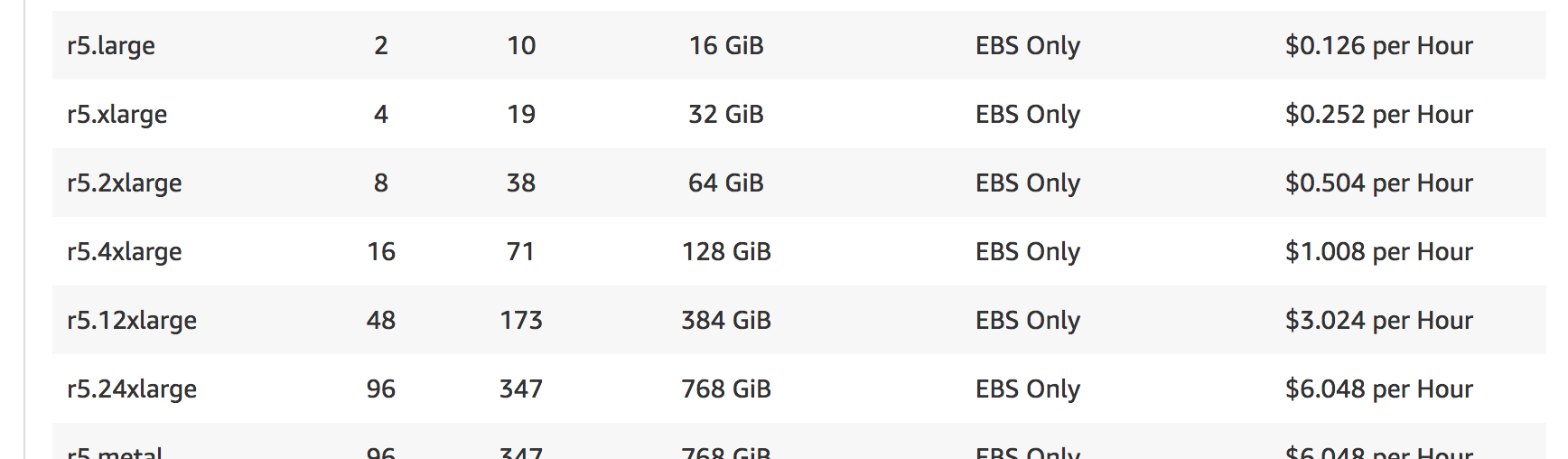 这几代人大多是"5“系列,比如c5、m5和r5 https://aws.amazon.com/ec2/pricing/on-demand/: