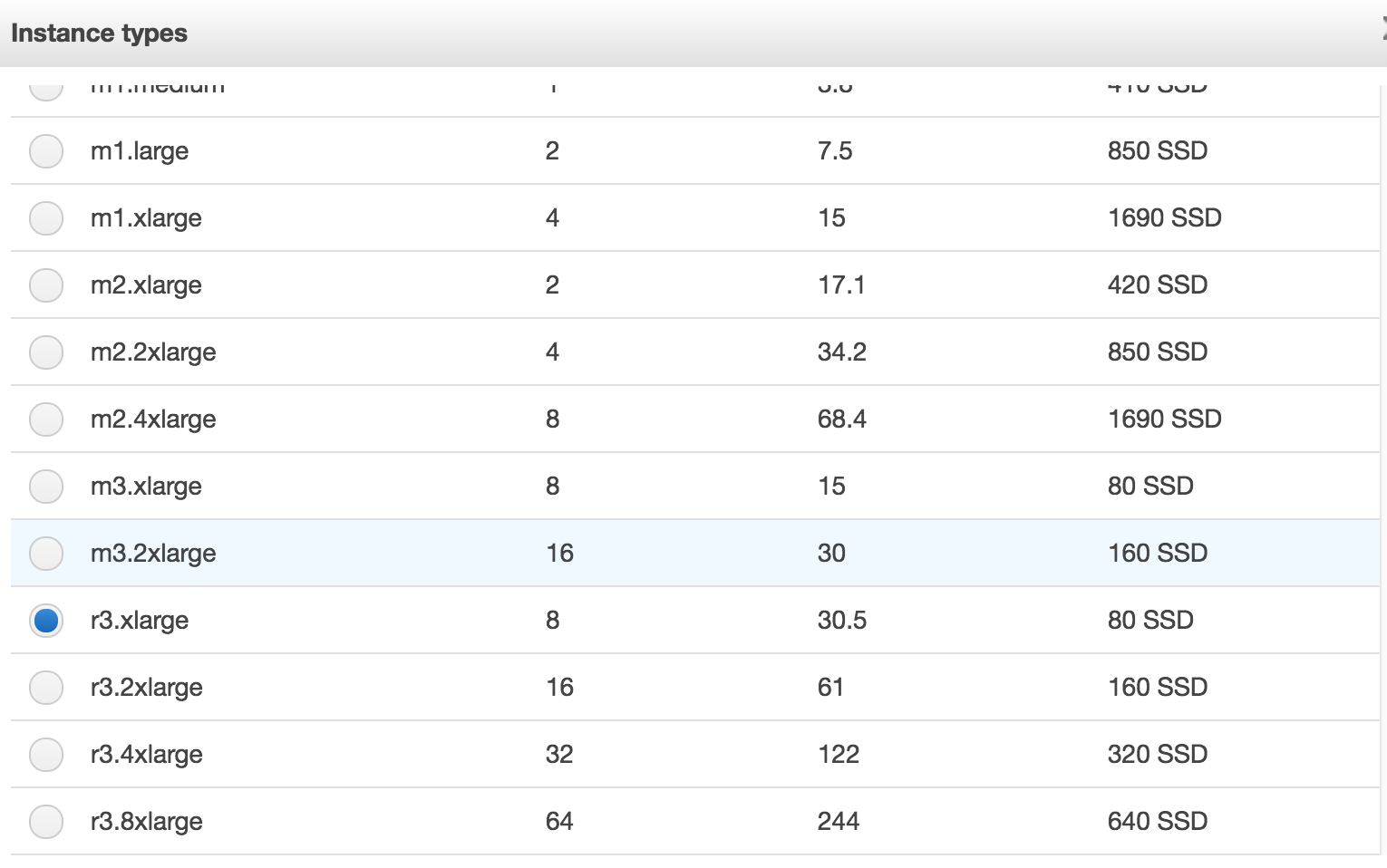 注意:我使用的是“母舰”us-east-1。这是最古老的,通常也是最广泛支持的区域:我不希望看到该区域对实例类型的支持受到严重限制。