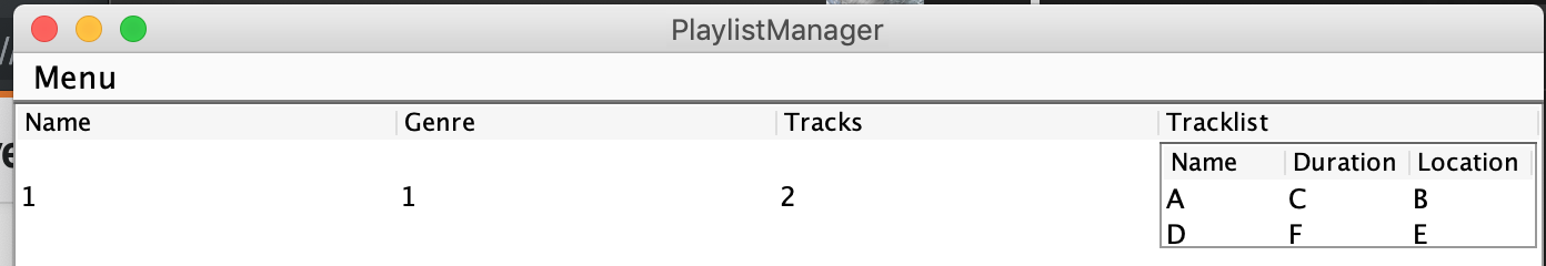 我想把JTable放进JTable。一切都很好,我可以得到所有的跟踪信息,并成功地把它放入模型和insideTable,唯一的问题是,我不能让它渲染。