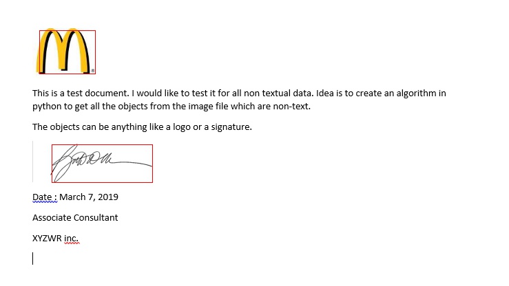 有什么方法可以从包含文本的图像中提取非文本数据吗?我有一个图像,让我们说,一封信,其中有文字,以及签名和标志。我想提取只是标志和标志,更确切地说,删除所有的东西,是文字。有什么办法吗?提前谢谢。