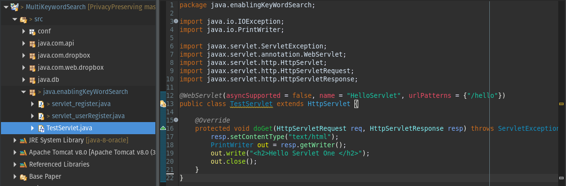 @WebServlet(name = "HelloServlet", urlPatterns = {"/multiKeywordSearch"})
