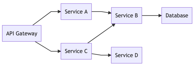 API Gateway调用Service A和Service CService A调用Service BService B调用DatabaseService C调用Service B和Service D目前,我看到了两种选择: