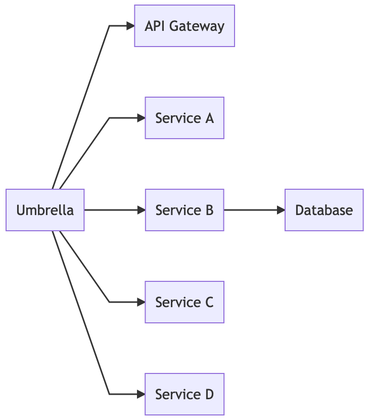 Umbrella图表,它依赖于所有其他图表。Database图表是Service B图表的依赖项。