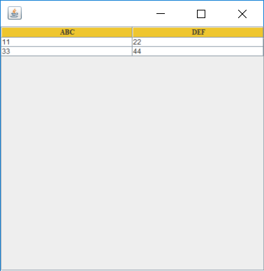 JTable table = new JTable(new String[][] {{"11", "22"}, {"33", "44"}}, new String[] {"ABC", "DEF"});