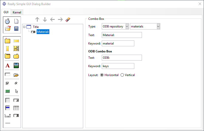 odb.materials[material_name].userMaterial #user material parameters我想为这段代码创建一个插件,因为我需要经常使用它。但在“组合框”中,我很难弄清楚盒子的含义。