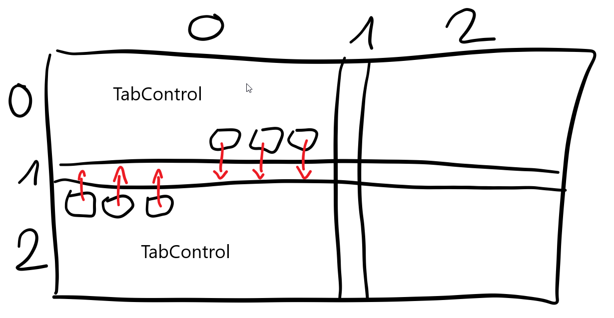 将较低选项卡的顶部边缘设置为负数,使其扩展到其在网格中位置的上方。将GridSplitter放在下面,将其设置为调整行的大小并水平拉伸(我使用蓝色背景使其可见)。