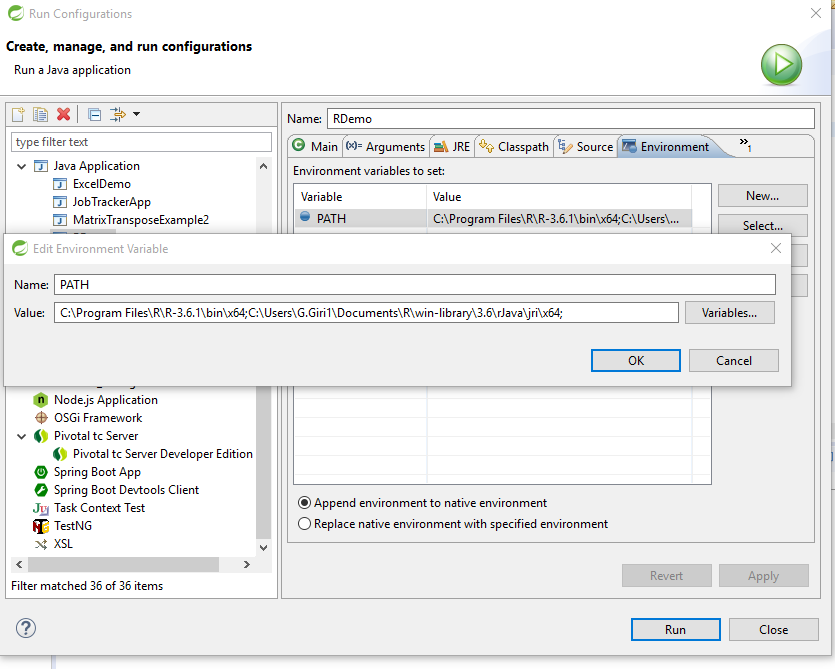 Value: C:\Program Files\R\R-3.6.1\bin\x64;C:\Users\[Username]\Documents\R\win-library\3.6\rJava\jri\x64;
