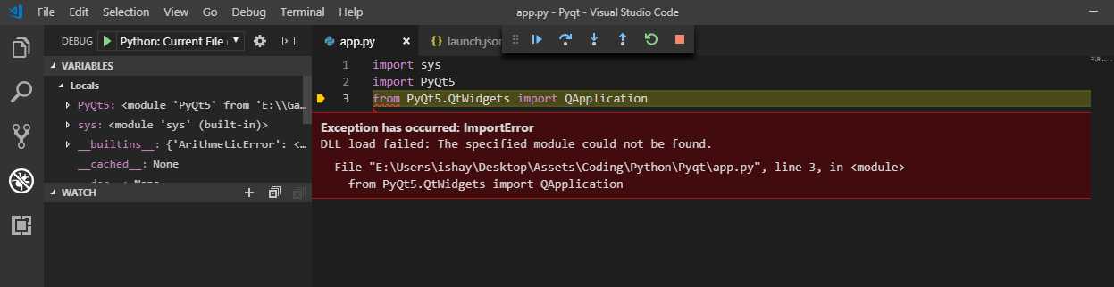 为了创建图形用户界面,我一直试图学习PyQt5。Pip安装了PyQt5 &PyQt5工具,但是当我尝试使用Visual (同时安装了VS代码的Python扩展)时,我会收到一个错误。