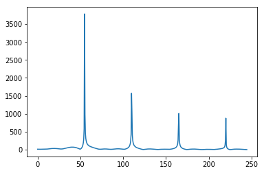 我正在尝试从一个mp3文件中提取一个注释的频率,该文件包含一个合成的A3便笺样本,它应该是220 Hz。