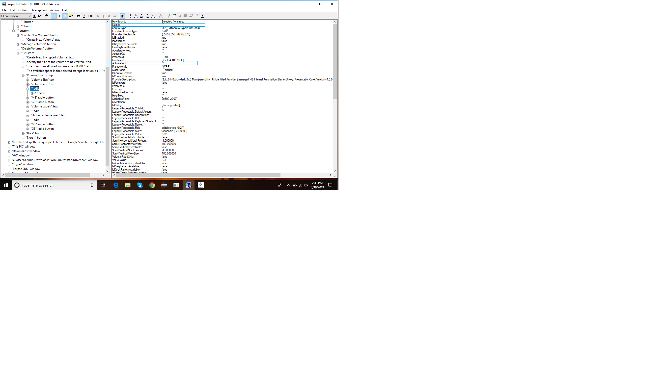 我们使用inspect.exe来查找元素。我们试图为我们的桌面应用程序找到ID、NAME和类名的元素,但是我们发现id = "“、name ="”和class Name = "Text Box“。