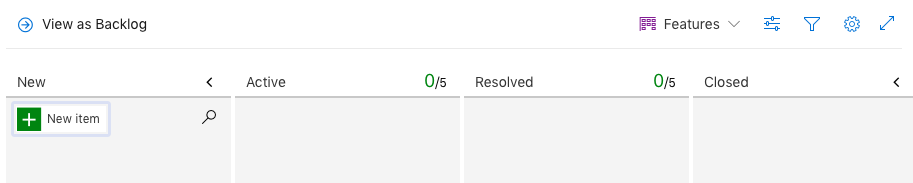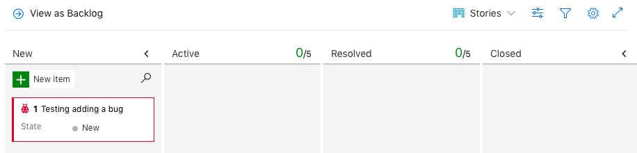在板上,我可以过滤以看到“特性”,但不能在待办事项列表中看到"Bug“。因此,我无法使用看板显示bug状态。