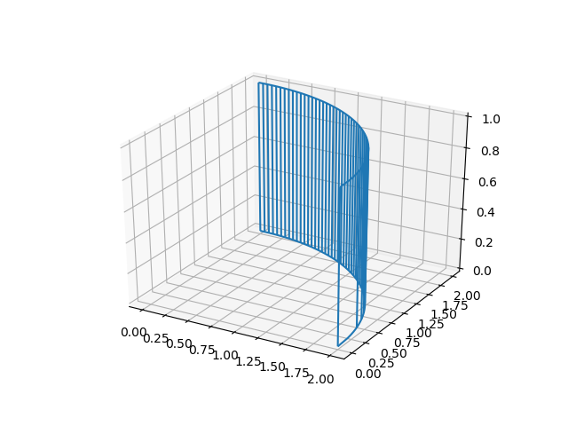 根据答案更新问题。也许二维数组的第一维表示3D空间中的一条线,而线框是用来连接所有的线的。在这个例子中,我在z坐标为1.0的x,y平面上画了两个四分圆: