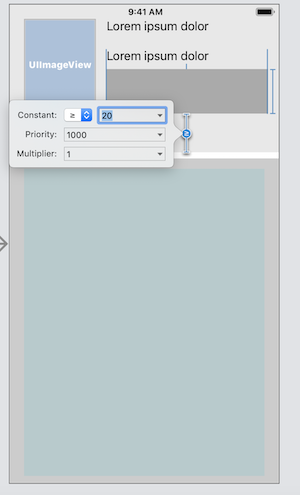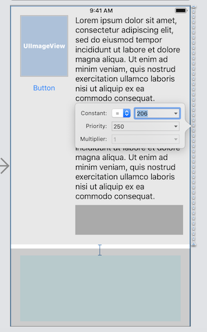 嵌入您的图像,按钮两个标签和堆栈在一个视图。然后添加以下约束