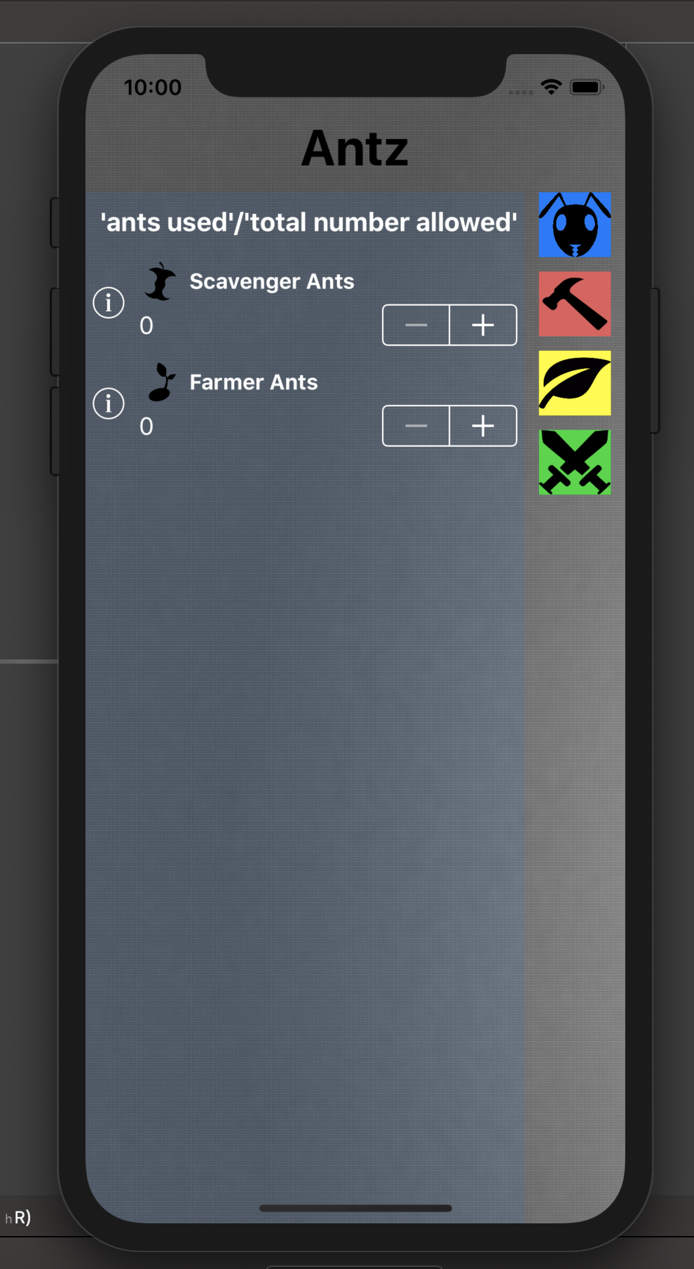 用户有一组可供工作的蚂蚁(此数字是我的对象用户的属性)。也有一个属性的蚂蚁数量,目前工作(‘蚂蚁使用’在我的屏幕截图)。