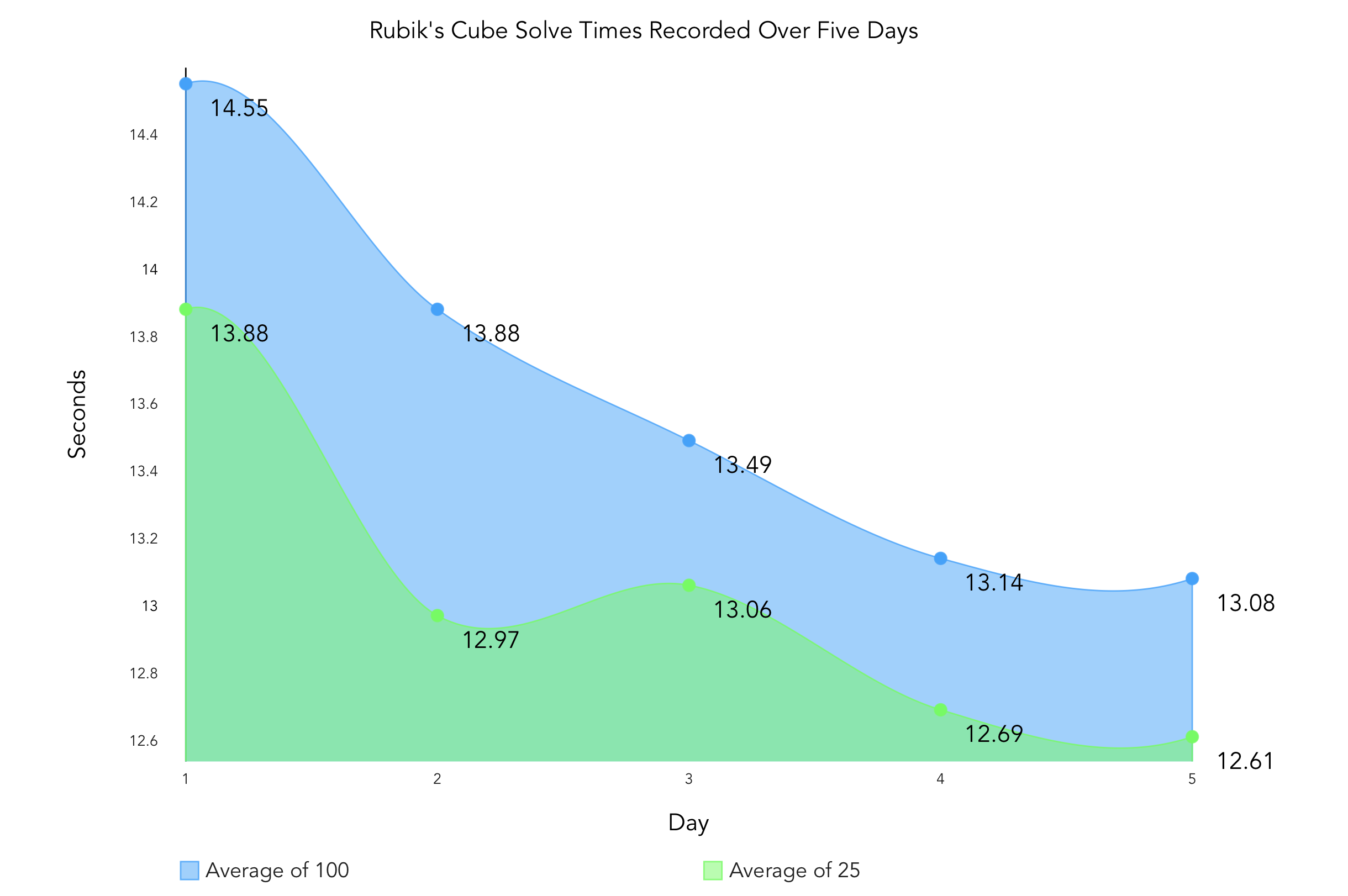 chart.title = "Rubik's Cube Solve Times Recorded Over Five Days"