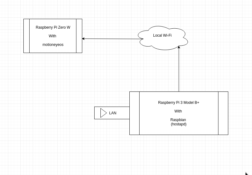 我正在尝试构建一个小系统,其中包括一个rPi和rPi零。rPi作为本地无线热点,rPi零连接到rPi,hotspot.Then I通过rPi接入零摄像头。我的图表看上去像这样。