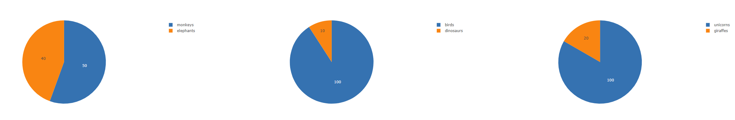 我正试图并排绘制3个饼图。我不明白为什么下面的代码会使饼图在页面的对角线上左转写,而不是水平地左转写一行。