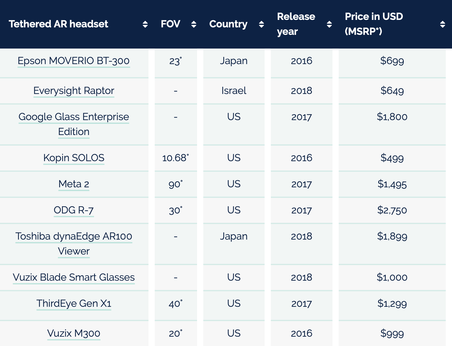 我相信你可以用ARCore的SDK来做谷歌的智能眼镜,但是表中列出的其他眼镜都有自己的开发工具包。我认为伏弗利亚肯定是您最健壮的选择,因为它支持外部摄像机和数码眼镜片系列。