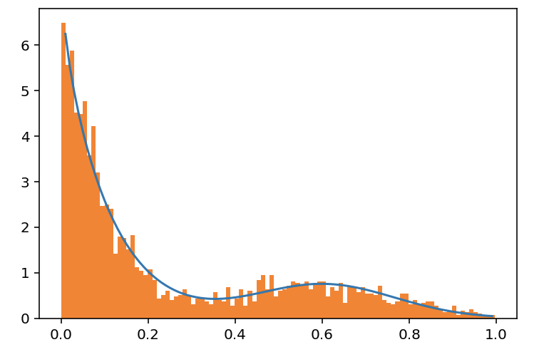 print(BetaDistribution.from_samples(X).parameters) # approximate beta parameters