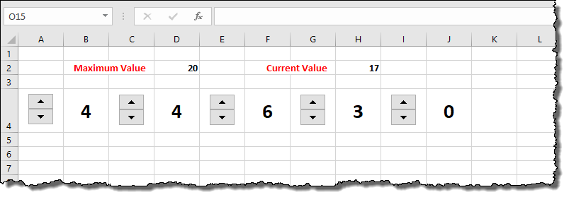 输入一个最大值(如单元格D2中显示的那样),然后旋转到它,它将导致最后一个自旋下降到它以前的值。