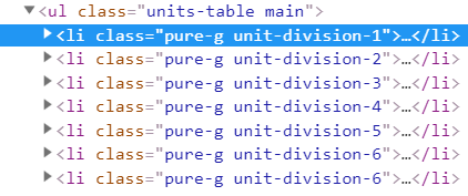 Set list = .document.getElementsByClassName("units-table main")