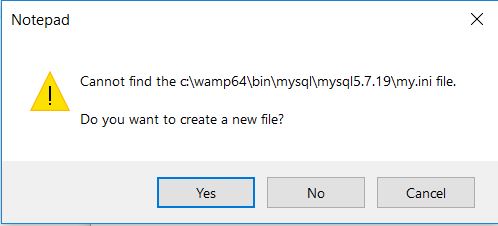 找不到c:\wamp64\bin\mysql5.7.19\my.ini文件