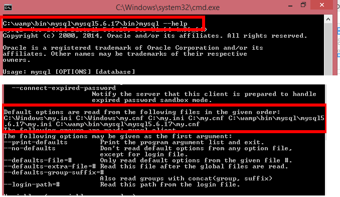 然后运行命令:mysql --help。您将看到类似于下面的图像的输出。打开那个文件然后编辑。