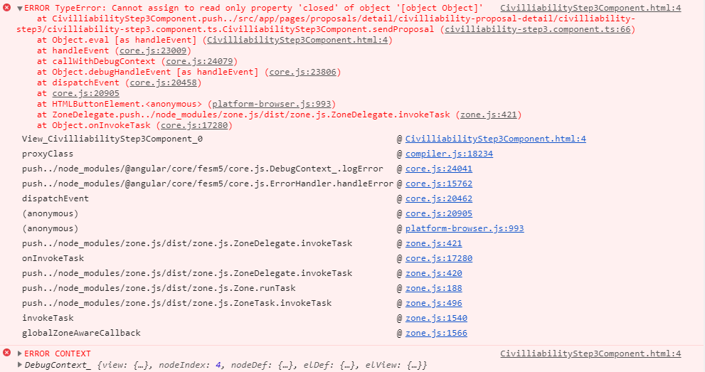 TypeError:无法指定对象' Object‘的只读属性’关闭‘