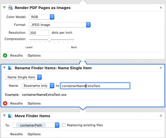 重命名查找项操作将只重命名(您需要使用Make Sequential选项,而不是名称单个项目),但这并没有多大帮助,特别是因为呈现PDF页面,因为图像操作在其输出中也使用序列号。