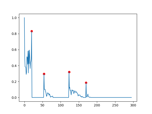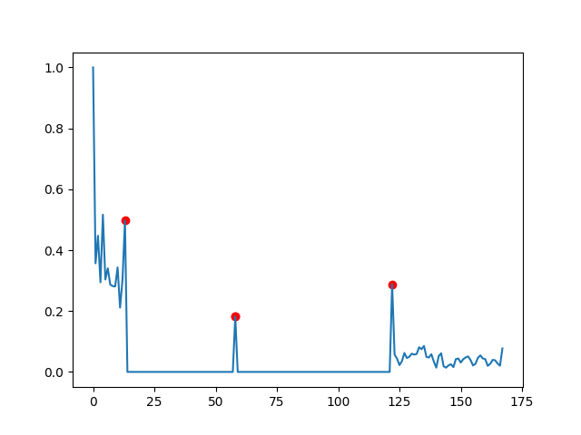 peaks_d = detect_peaks(diff_list, mph=None, mpd=4, threshold=0.1, edge='falling', kpsh=False, valley=False, show=False, ax=None)