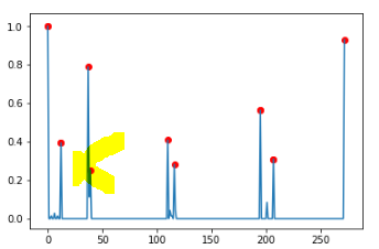 这变得更加棘手,因为现在在峰值后逐渐减少,导致差异的缓慢聚集,足以击中dy_lim,导致算法错误地报告一个新的目标。因此,,您需要测试这个目标是否真的是一个峰值,并且只报告。