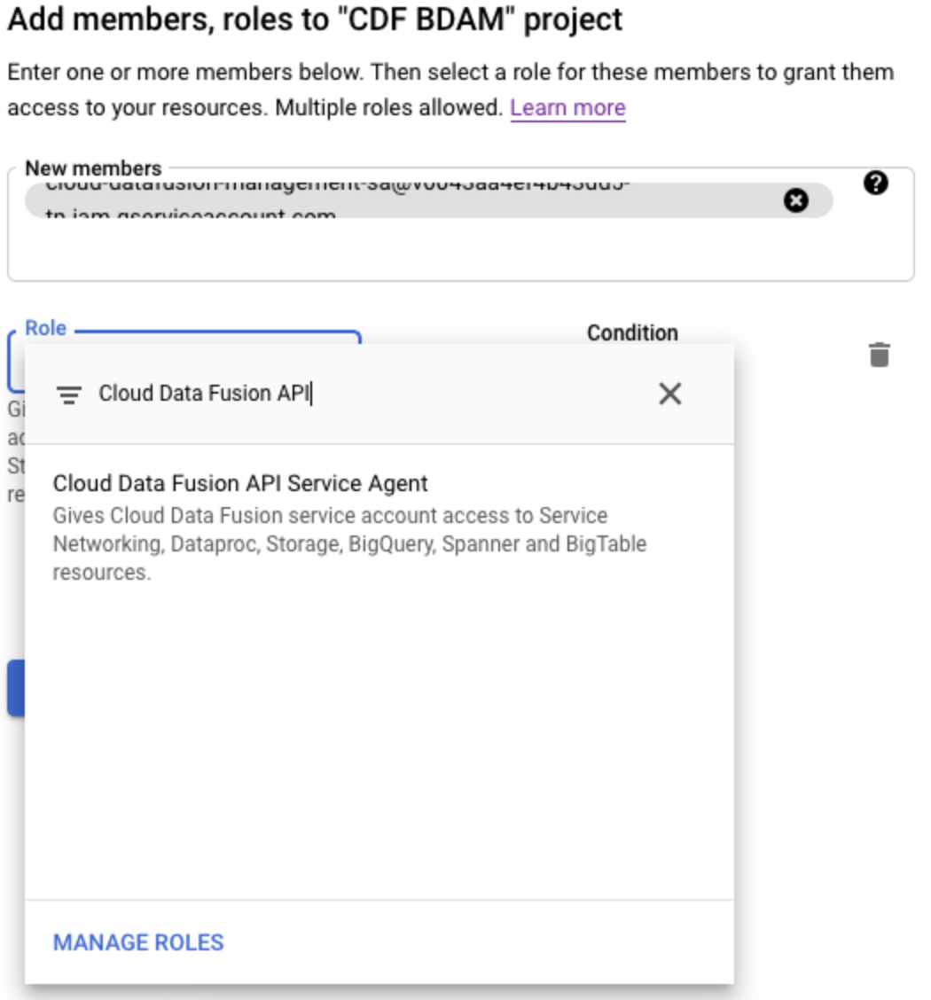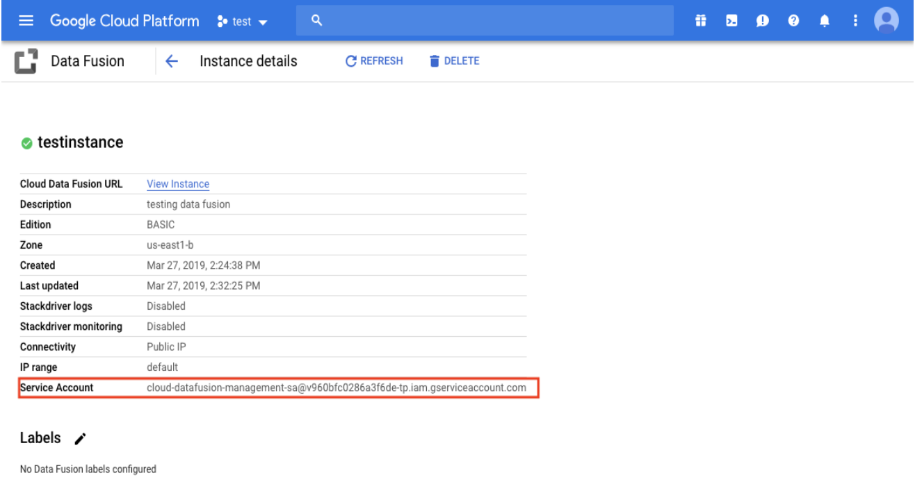 数据融合Beta在创建实例后需要一个额外的步骤来授予其在创建该实例的项目上的服务帐户权限。每个项目只需要这一步一次。