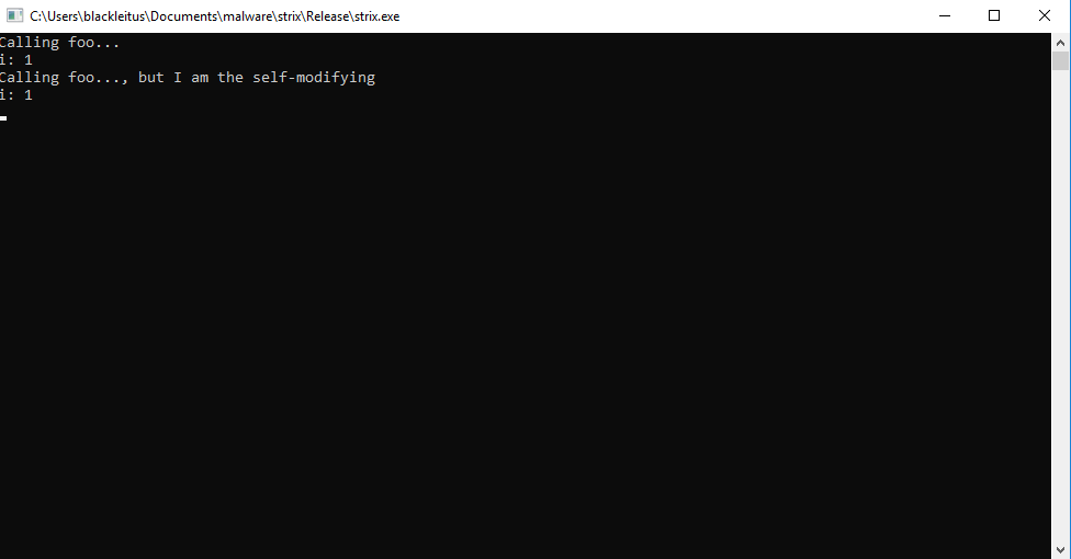 puts("Calling foo..., but I am the self-modifying");