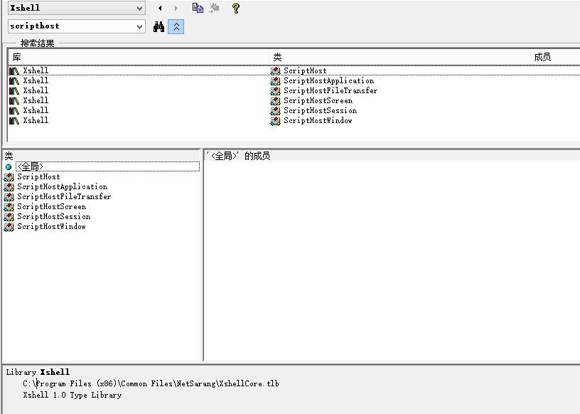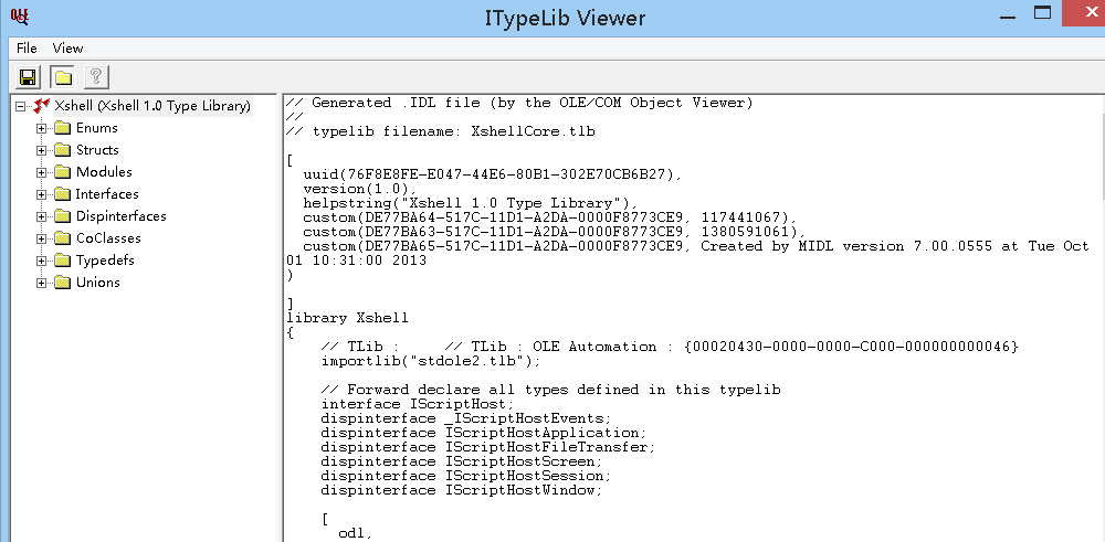 我已经尝试oleviwer找到一些关于xshell 1.0类型库的信息,但实际上我找不到Xshell的ProgID。