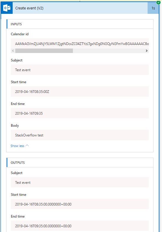 我正在设计一个Microsoft流,它将根据SharePoint-online列表中的信息创建outlook日历事件条目。