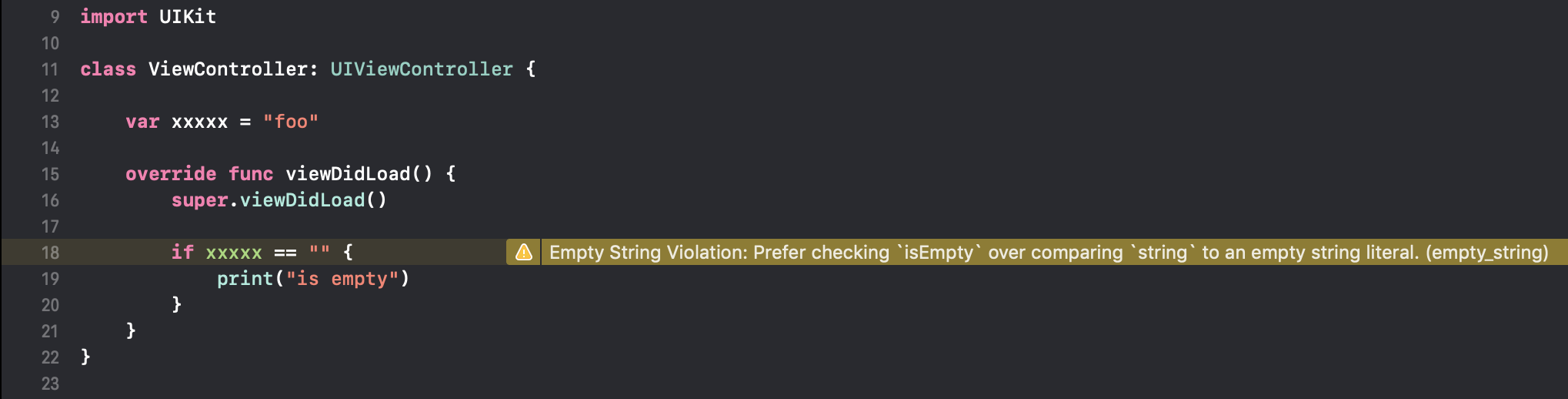 isEmpty而不是将string与空字符串文本进行比较。(empty_string) Linting 'MyDataSource.swift‘(570/578)