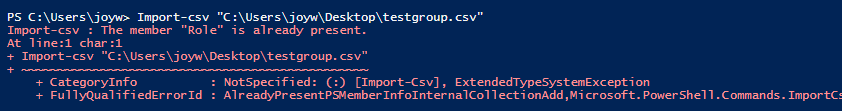 Import-csv : The member "Role" is already present.