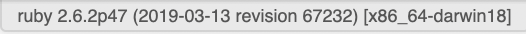 ruby 2.6.2p47 (2019-03-13 revision 67232) [x86_64-darwin18]