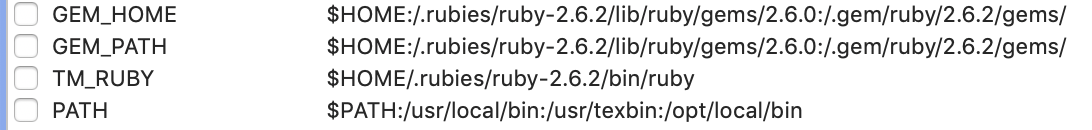 我很难让Ruby与TextMate (TM)和chruby在macOS上正常工作。