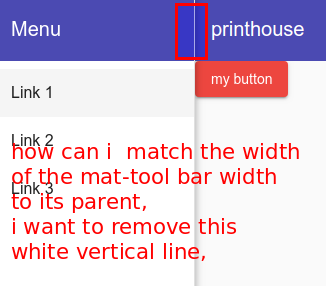 学习角度材料设计。我创建了一个侧导航,并在它里面放置了一个垫子工具栏,但是mat不接受它的父侧导航的全部宽度,在它的右侧显示一些白线(这是它的父侧的背景颜色)如何删除白色背景。