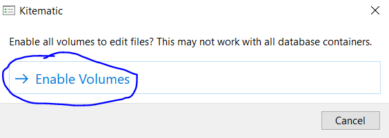现在,如果我单击通过的卷(如屏幕截图所示),并在显示的提示符中单击“启用卷”,容器将重新启动,并且工作日志也会如预期的那样出现在预览中。