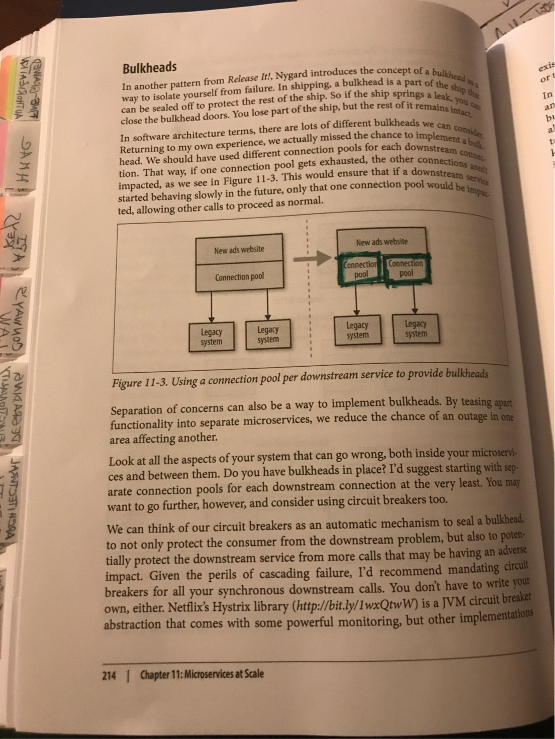 在山姆·纽曼( Sam )的“构建微服务”(Building,O‘’Reilly)中,有一节名为“舱壁”(),它是一章的一部分,讨论了如何防止阻塞的微服务破坏整个系统。