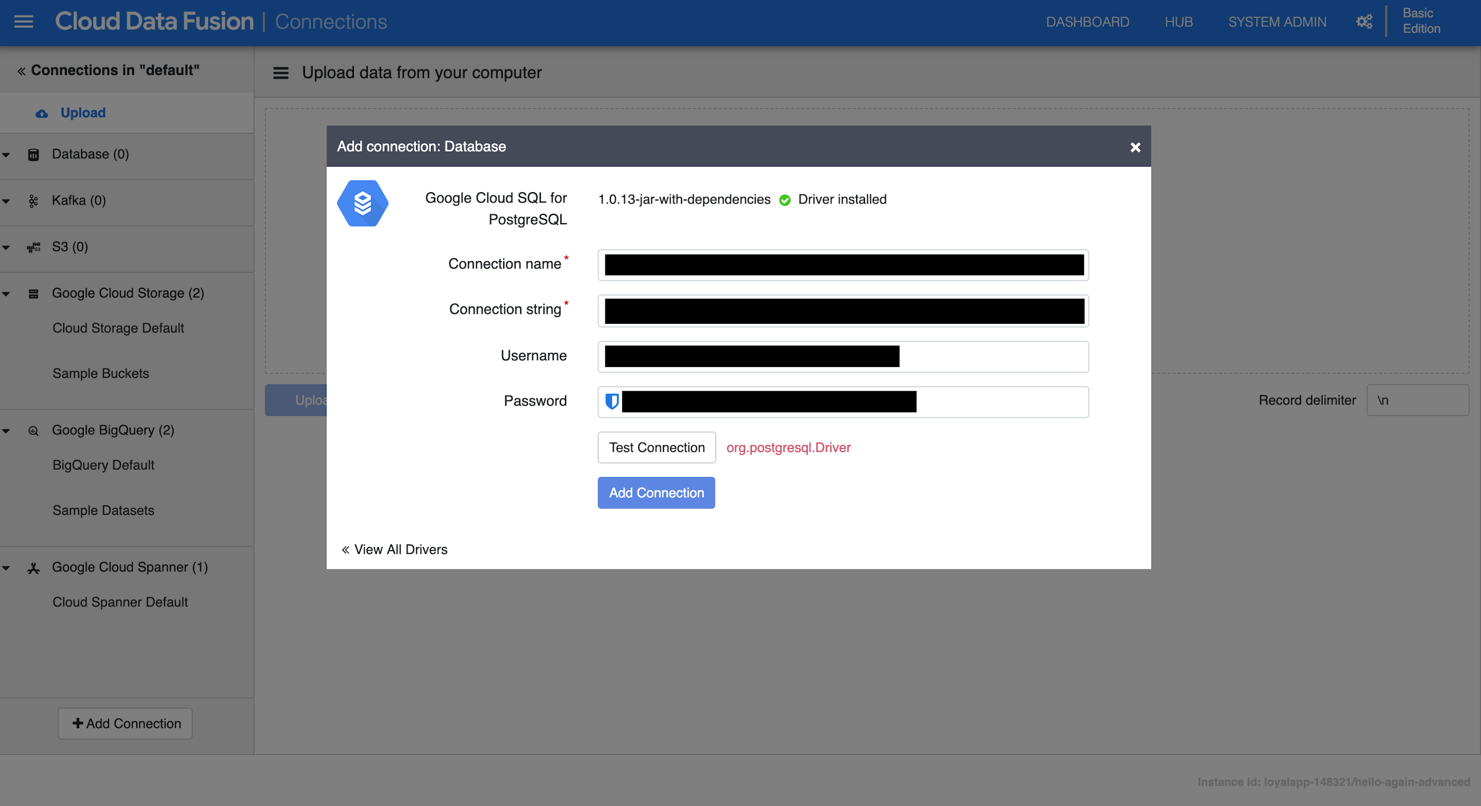 作为驱动程序,我上传了我在这里下载的postgres-socket-factory-1.0.13-jar-with-dependencies.jar:https://github.com/GoogleCloudPlatform/cloud-sql-jdbc-socket-factory