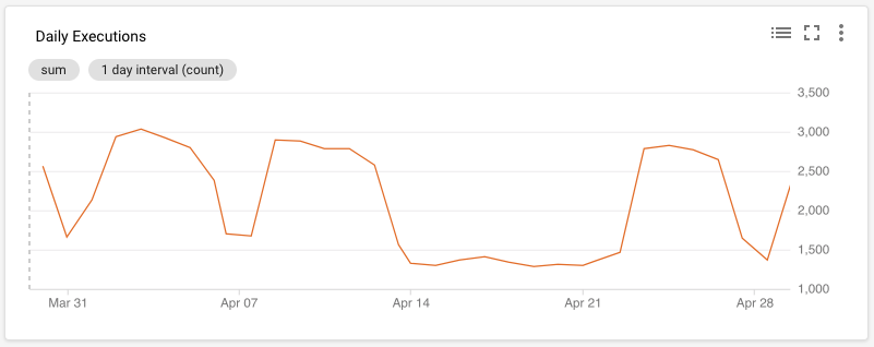正如在这两张图上所看到的,它们的形状显然是相同的,但是尺度是不同的。Firebase图的大小似乎是Stackdriver图的3-4倍.