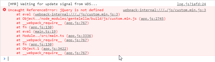 我试图集成Gentelella Bootstrap模板(https://github.com/ColorlibHQ/gentelella),但遇到了jquery依赖项的问题。错误:“JQuery未定义”。