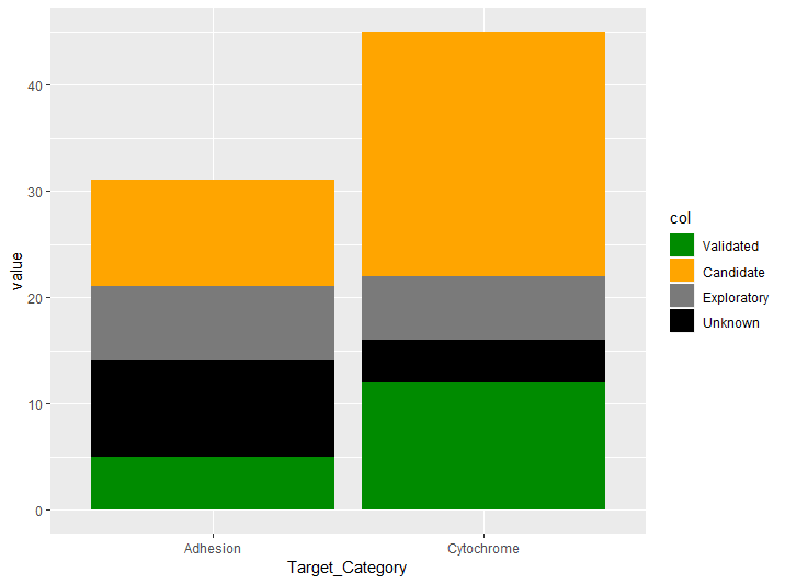 mutate(col=factor(col, levels = c("Unknown", "Exploratory", "Candidate", "Validated"))) %>%
