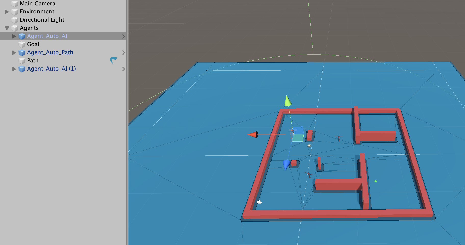 在我的场景中,我有一个特工,它会移动到一个特定的目的地。当我试图复制它以创建第二个代理时,产生的行为非常奇怪:代理被传送到映射的相反的拐角处,停止移动。此外,运行时的导航网格似乎有所改变(如您在第二个屏幕快照中所看到的)。一旦我禁用一个代理,另一个就开始按预期工作。