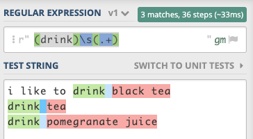 [^ i|like|to|drink][\w+](\s*)(\w*)Regex:?
