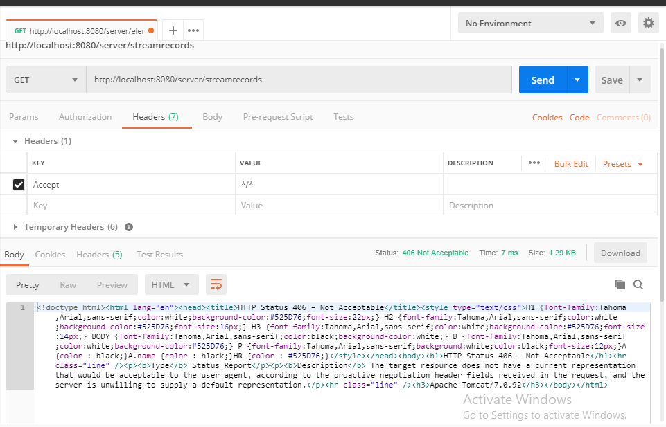 @RequestMapping(value = "/streamrecords", method = RequestMethod.GET, consumes = MediaType.ALL_VALUE,