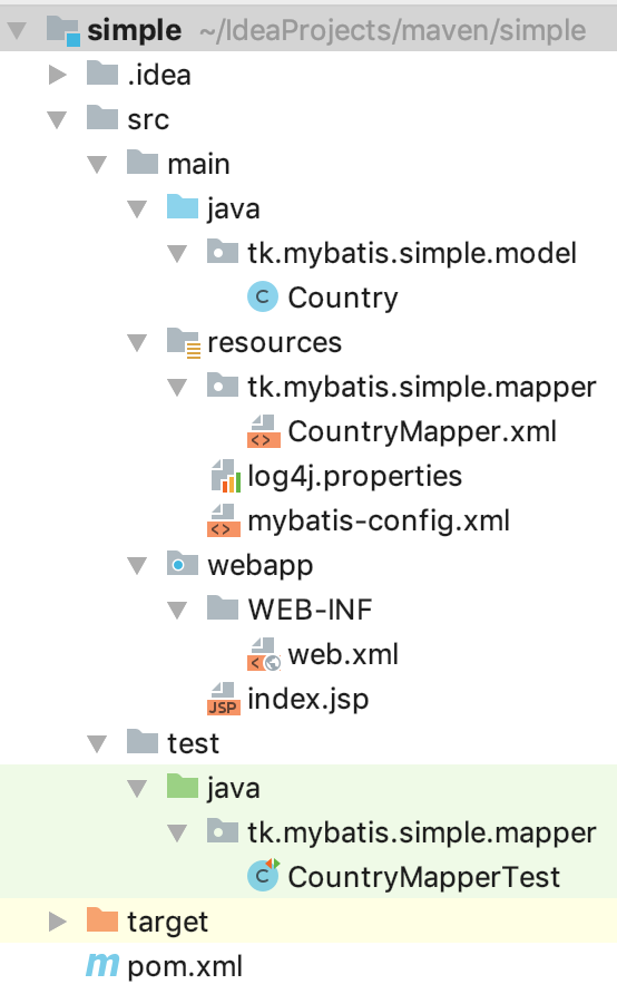 Could not find resource tk.mybatis.simple.mapper.CountryMapper.xml项目目录